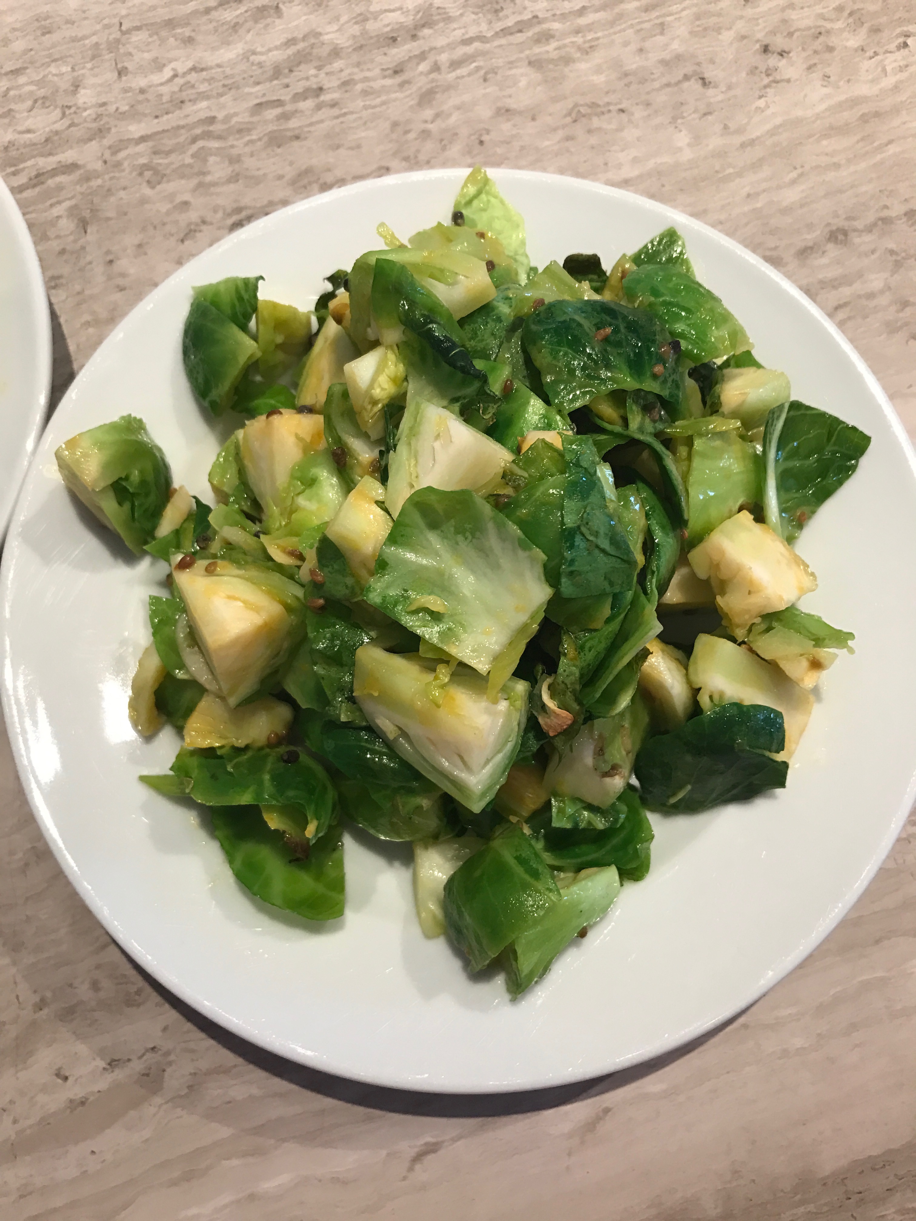 But y’all, I’m in total ‘fuck it’ mode now. I love to eat and also, I love to cook, including from recipes with ingredients I need to Google image search before heading to the grocery store. In the last few days I have prepared several things for family and friends from recipes — goat cheese toasts with pistachio and mint, pumpkin bread with olive oil, and green lentils with spinach and chipotle. Off-recipe and just having fun, I have made roasted brussels sprouts with a hint of olive oil, pumpkin, almond milk, anise, and cardamom seeds, and a salad with baby beets and homemade oil and vinegar dressing.