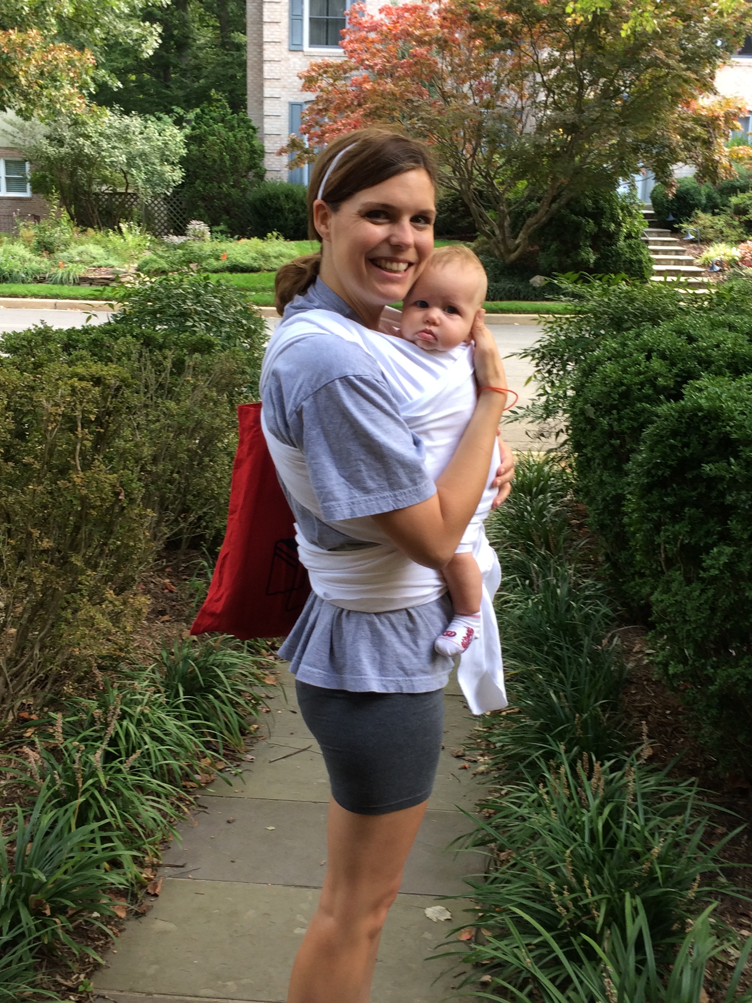 This is me and my daughter doing a September literature drop in Arlington for the Democratic slate. At the time, she was 15 weeks old: